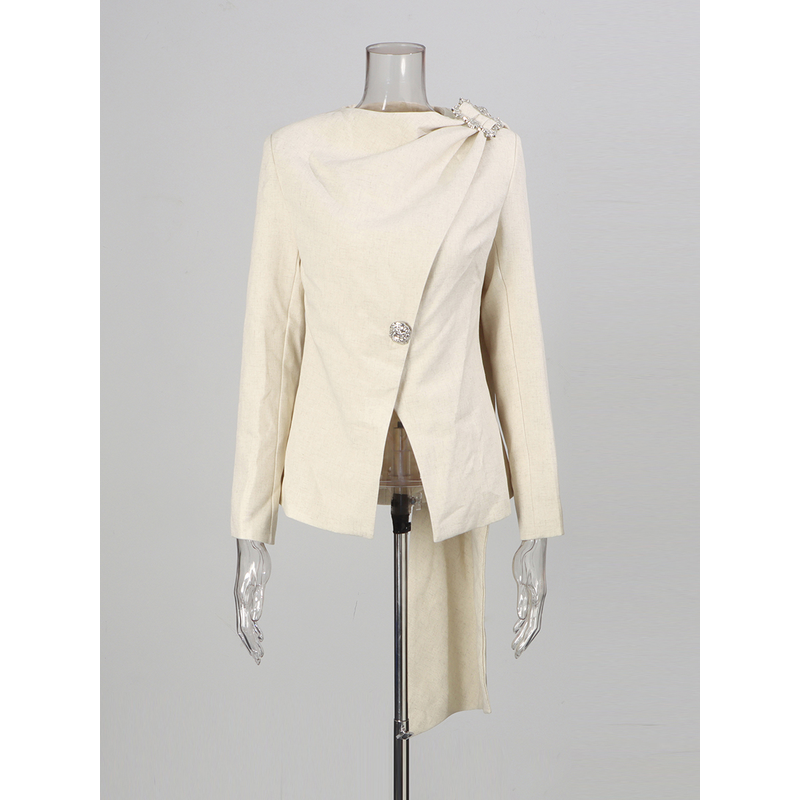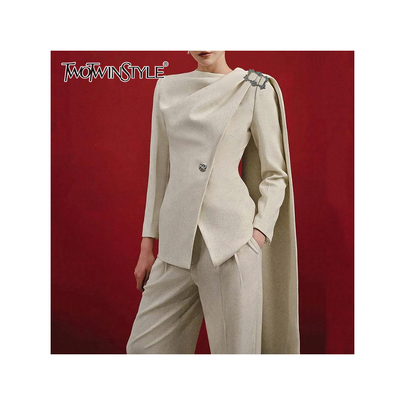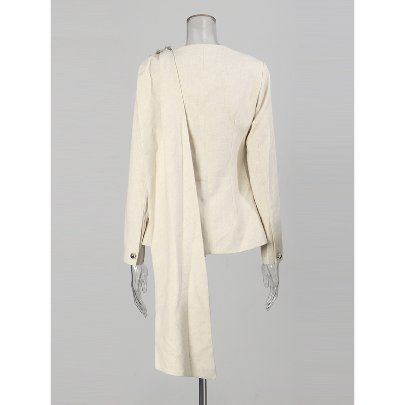 TWOTWINSTYLE Minimalist Spliced Button Temperament Jackets for Women Round Neck Long Sleeves Patchwork Ribbon Jacket Female New