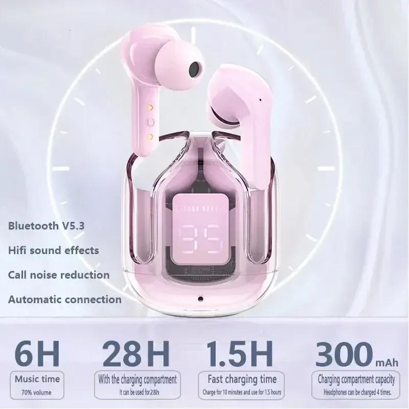 TWS Wireless Bluetooth Earphone Noise Canceling HiFi Stereo Sport Headphones with Digital Display Transparent Charging Case
