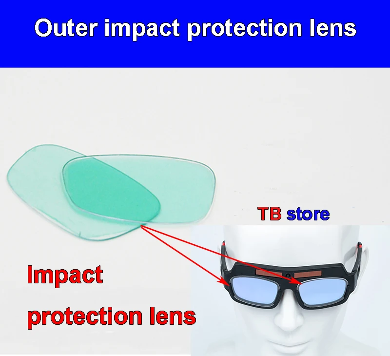 When the welding produces high-intensity arc light, the glasses high-sensitivity probe willThe arc intensity is detected, and the darkness of the glasses is automatically adjusted through the dimming screen to convert the arc contrast. Make sure that the arc does not cause any damage to the eyes. The front of the glasses has anti-impact protection lenses to ensure that it is in use.Prevent splashes from damaging the dimming screen and glasses.Such as welding spatter slagHarmful substances such as sand, liquid, small gravel, dust, etc.