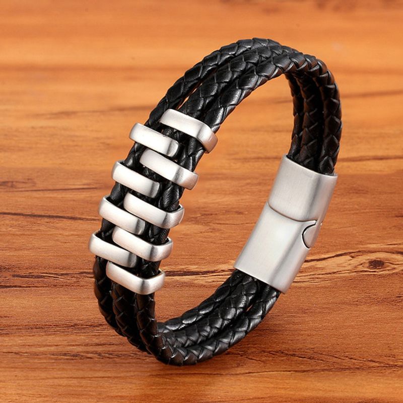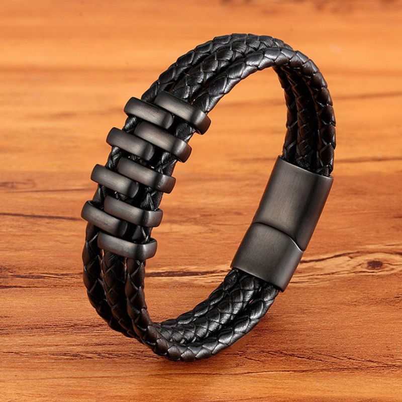 TYO Braided Rope Wrap Leather Bracelets For Men Bangles Fashion Male Women Charm Stainless Steel Clasp Jewelry DIY Customization