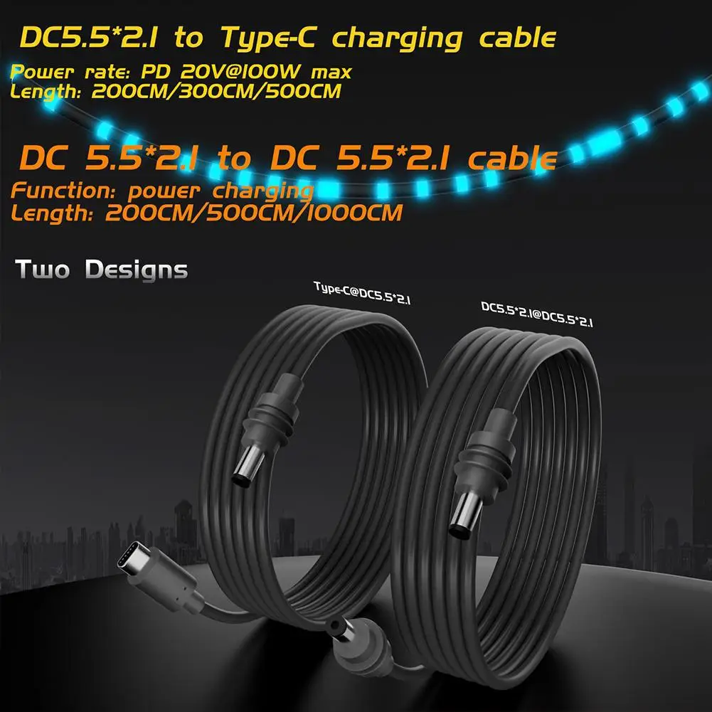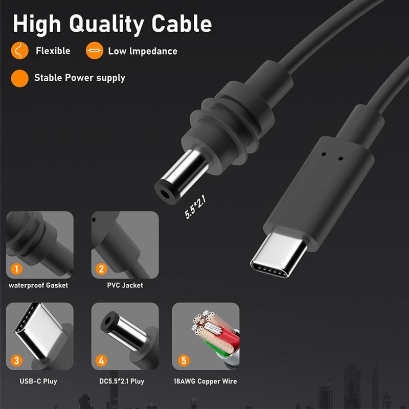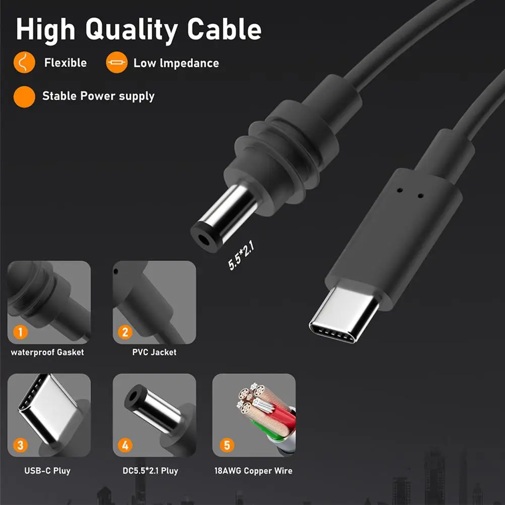 4.DC 5.5 x 2.1 to type c charging cable