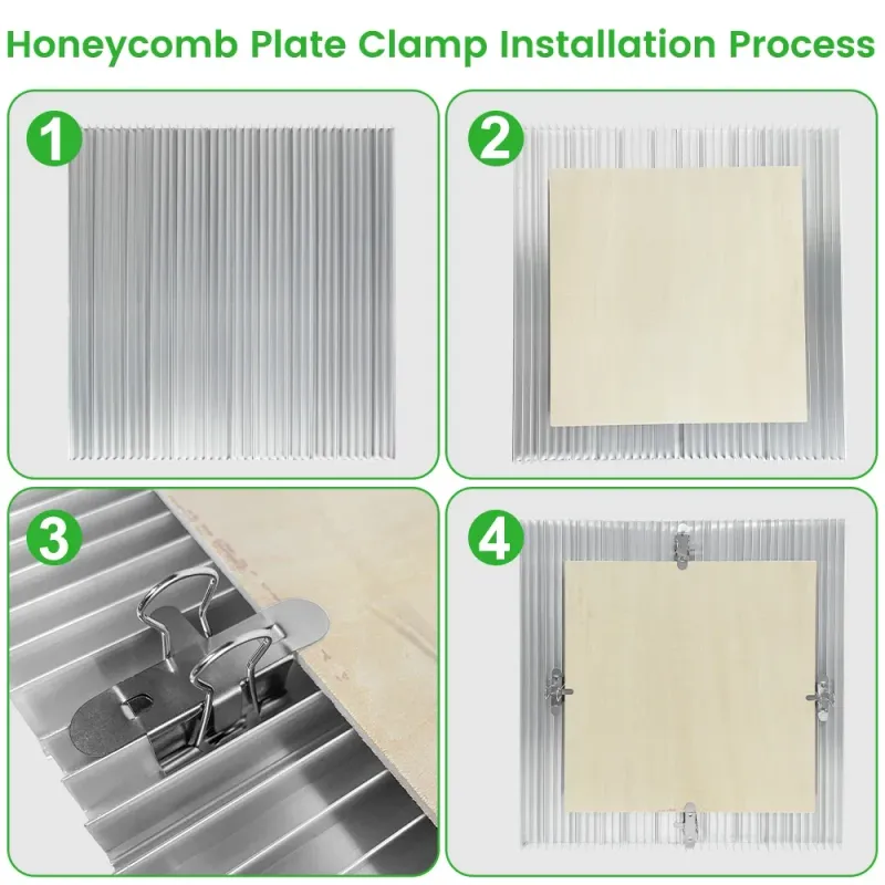 Flexible Honeycomb Plate Clamp Instalation ProcessHolds material in place ---prevents jiggling, movement, and warping during cutting.