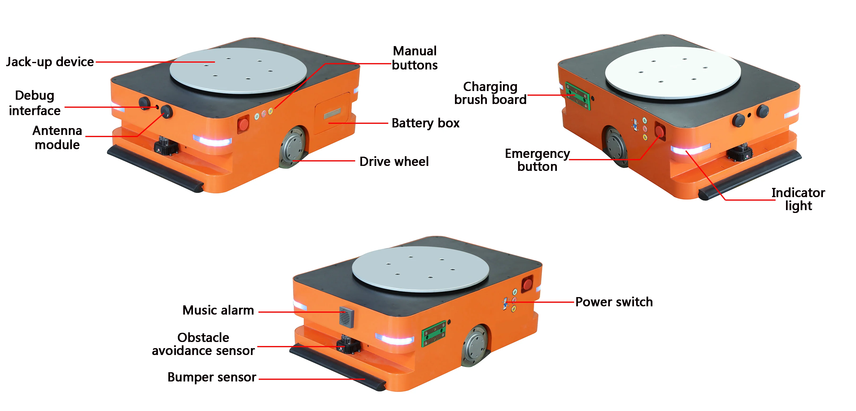 Laser obstacle avoidance, bumper sensor, emergency stop button