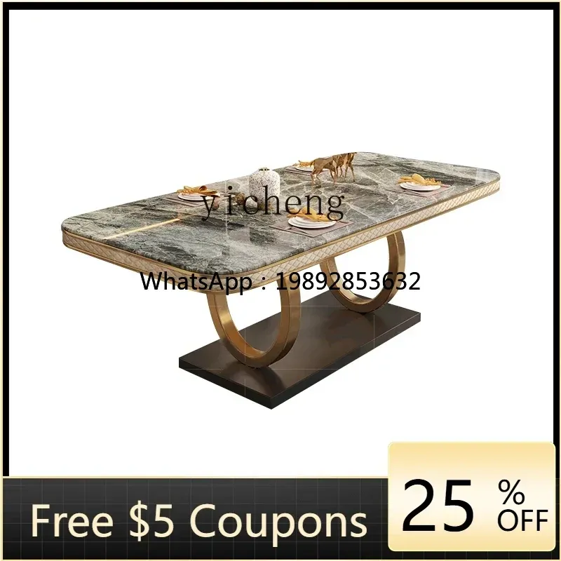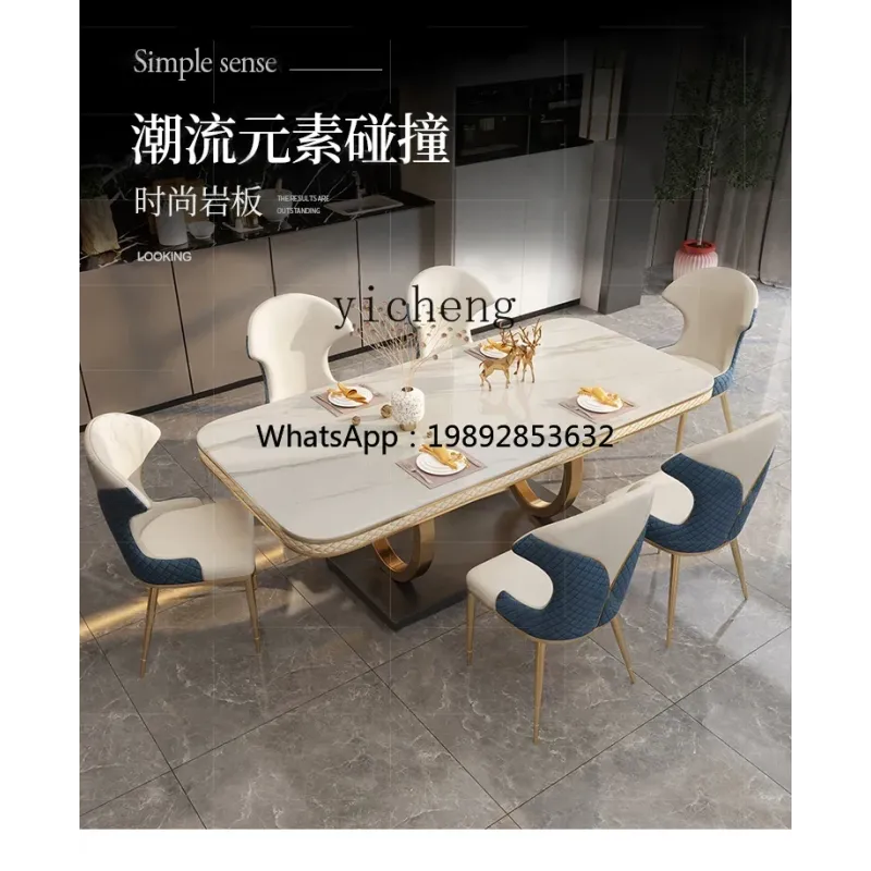 U6 rock slab dining table and chairs light luxury high-end rectangular modern simple stainless steel household small apartment
