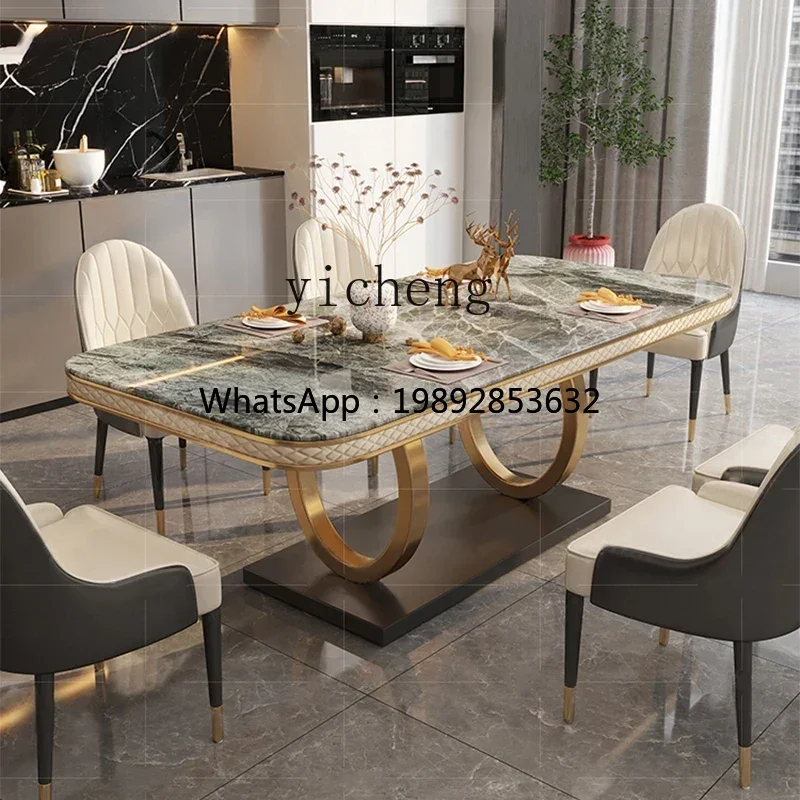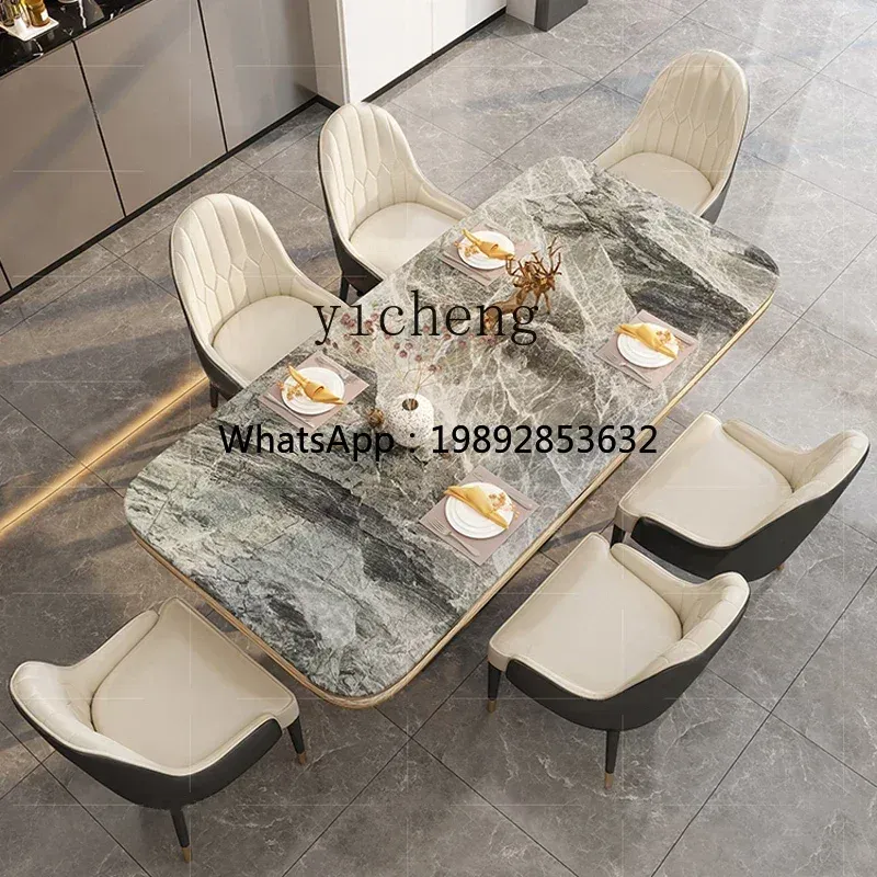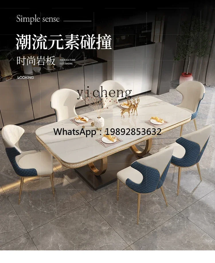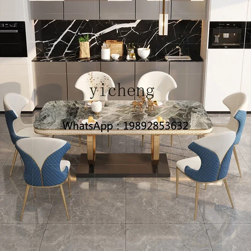 U6 rock slab dining table and chairs light luxury high-end rectangular modern simple stainless steel household small apartment