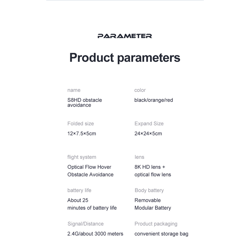 Color: S8 Orange [360 ° obstacle avoidance electric adjustment lens optical flow positioning] dual camera, S8 black [360 ° obstacle avoidance electric adjustment lens optical flow positioning] dual camera, s8 Red [360 ° obstacle avoidance electric adjustment lens optical flow positioning] dual camera, S9 Orange [360 ° obstacle avoidance electric adjustment lens automatically return GPS positioning] dual camera, s9 black [360 ° obstacle avoidance electric adjustment lens automatically return to GPS positioning] dual camera, s8S Orange [360 ° obstacle avoidance electric adjustment lens optical flow hover] small size, s8S black [360 ° obstacle avoidance electric adjustment lens optical flow hover] Small size