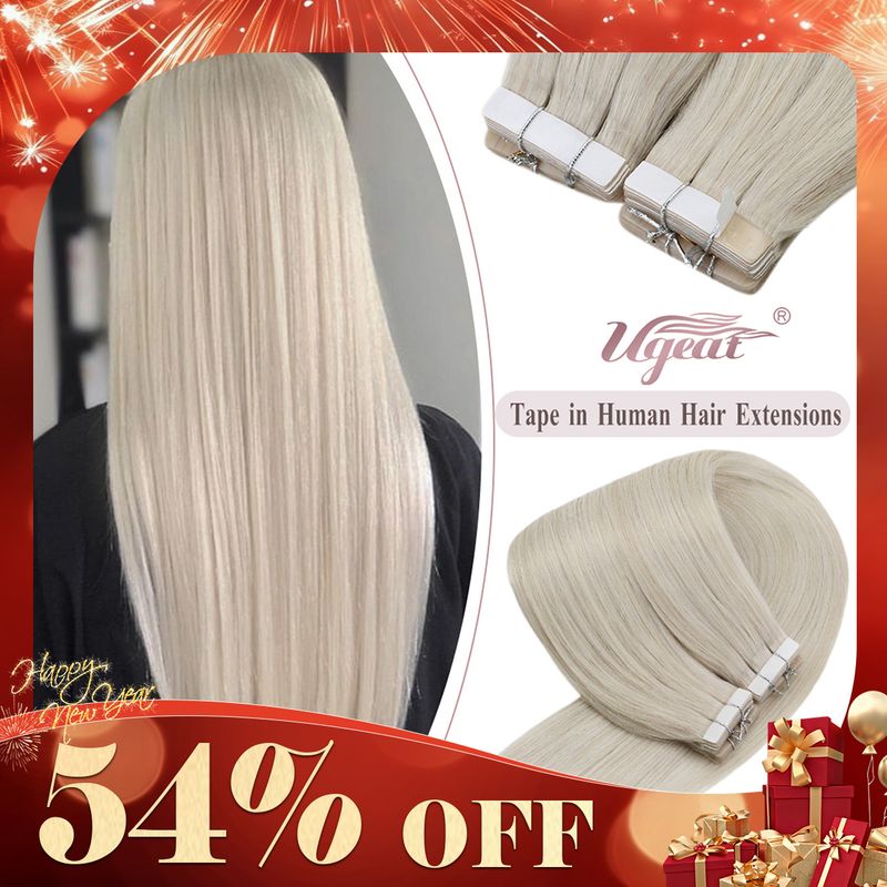Ugeat Tape in Hair Extensions Human Hair Real Natural Brazilian Remy Hair Straight Seamless Skin Weft For Women Balayage 20P/40P