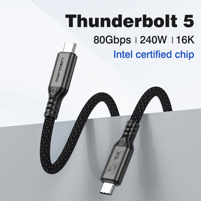 UGOURD 80Gbps Thunderbolt 5 Cable Certified Chip USB-C Thunderbolt5 2m 0.3m 120Gbps 240W 16K for MacBook M.2 Hard Drive USB4-V2