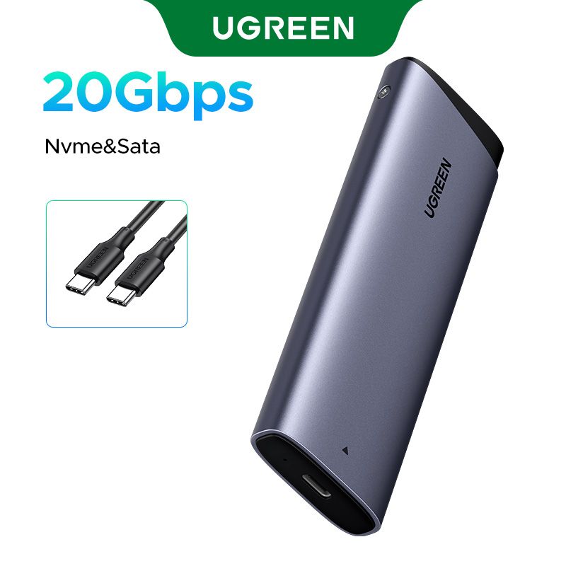 UGREEN 20Gbs M2 SSD Enclosure NVME SATA Dual Protocol M.2 to USB C SSD Adapter support 8TB for NVME PCIE NGFF SATA Disk