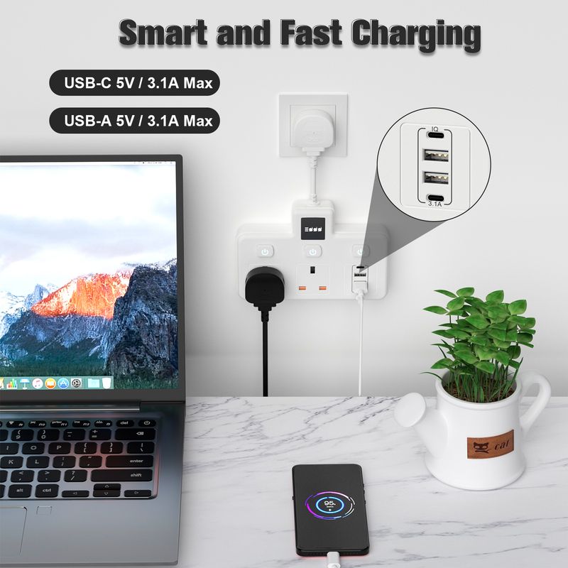 5. 【Safety Assurance and Service】 Certified by CE, RoHs, and BS 1363, with a built-in 13A fuse to prevent overcurrent, overcharging, short circuit, and overheating during device charging.