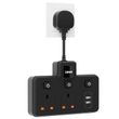 4. 【 2 Way Extension Lead 】 Total Output Power 3250W (13A), Maximum Voltage 100-250V. The multi-plug extension cord is made from fire-resistant materials, with a built-in child safety lock to protect your children or pets from electric shocks.