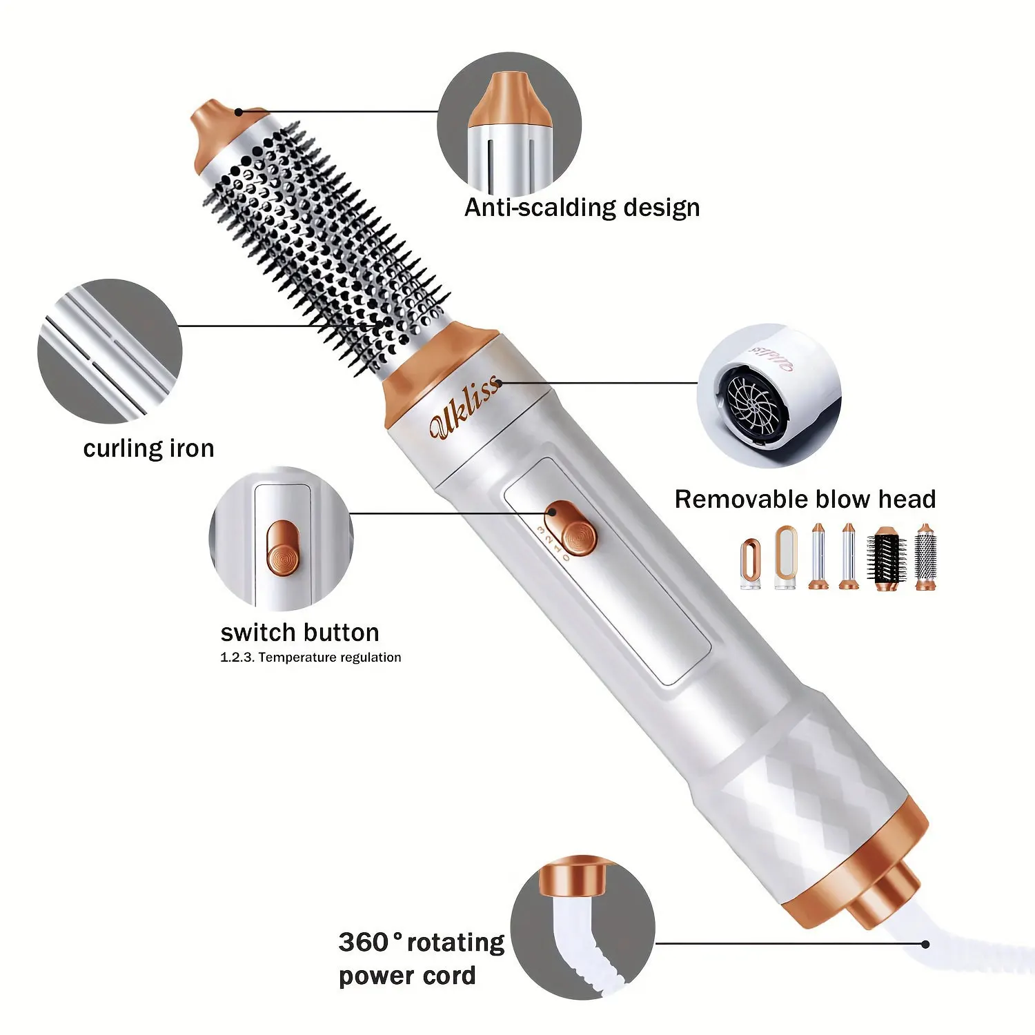 UKLISS Hot Air Brush Hair Dryer 6 in 1, Air Styler with Curling Iron, Straightening Brush
