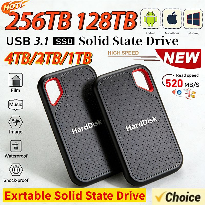 Ultra Fast Portable SSD 1TB High-speed External Hard Drive 4TB Ultra Durable Hard Disk 16TB Solid State Drive for Laptop PC MAC