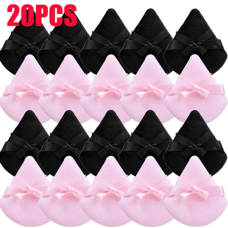 Ultra-Soft Face Powder Puff Short Fluff Bow Triangle Makeup Puffs Wet Dry Use for Loose Powder Cosmetic Foundation Beauty Tools
