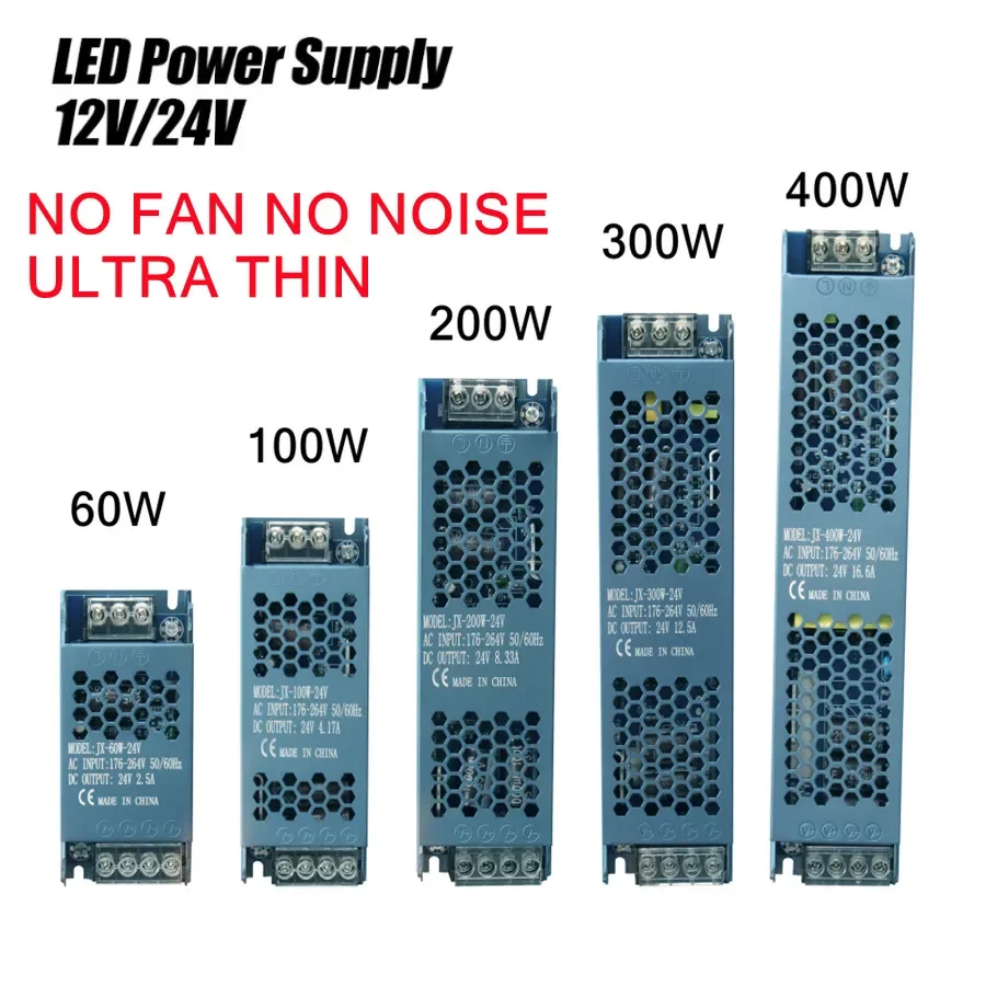 Super Thin AC DC Transformers 220V To 12V 24V Switching Power Supply 12 24 V Volt 60W 100W 200W 300W 400W