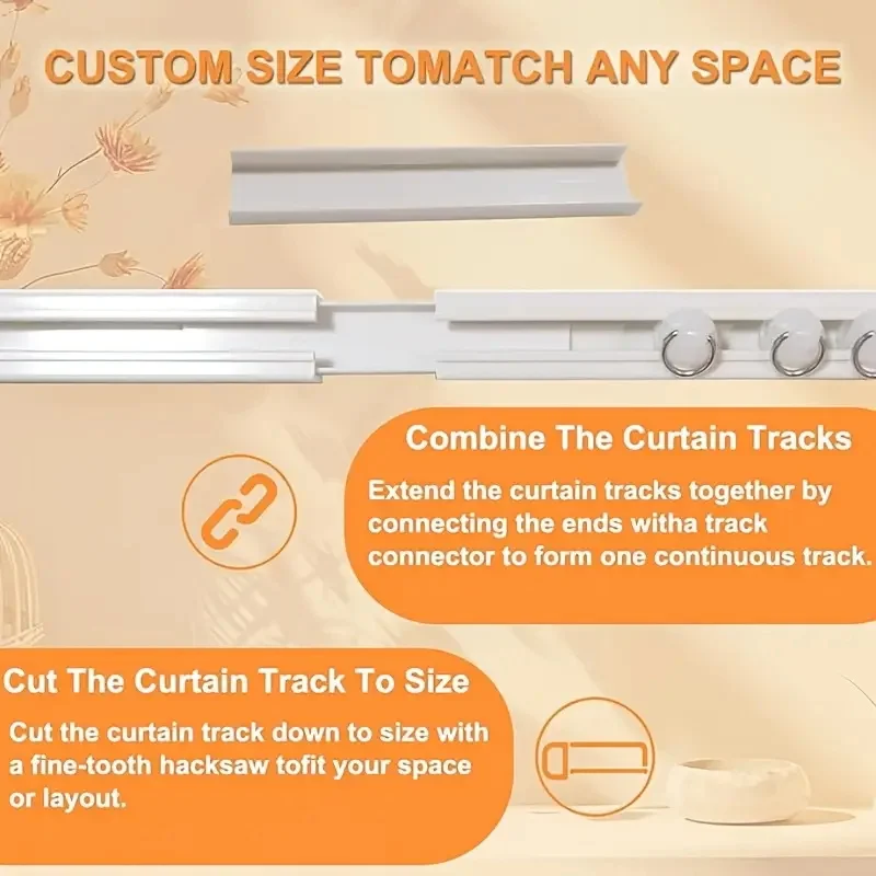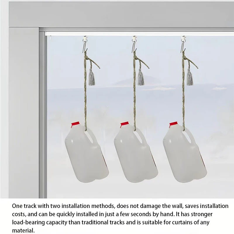 【Smooth Gliding】: This adhesive ceiling curtain track is designed for smooth gliding, allowing curtains to open and close effortlessly without any resistance.