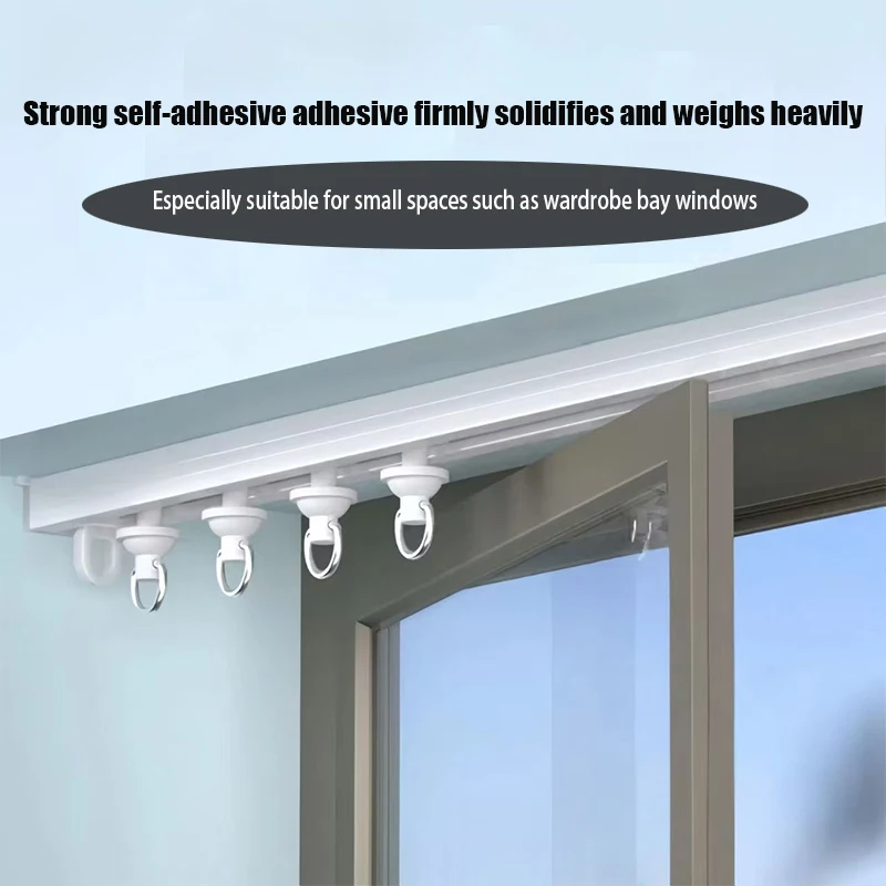 【Self Adhesive Curtain Track】: The new self-adhesive curtain track has been widened for better adhesion, making it easy to install on ceilings and walls without drilling, providing flexibility for curtain placement.