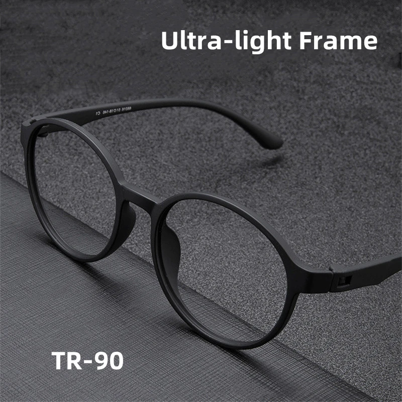 Ultraligh Fashion Flexible No Screws TR90 Eyewear Big Size Retro Round Optical Anti Blue Light Men Women Eyeglasses Frame 66016