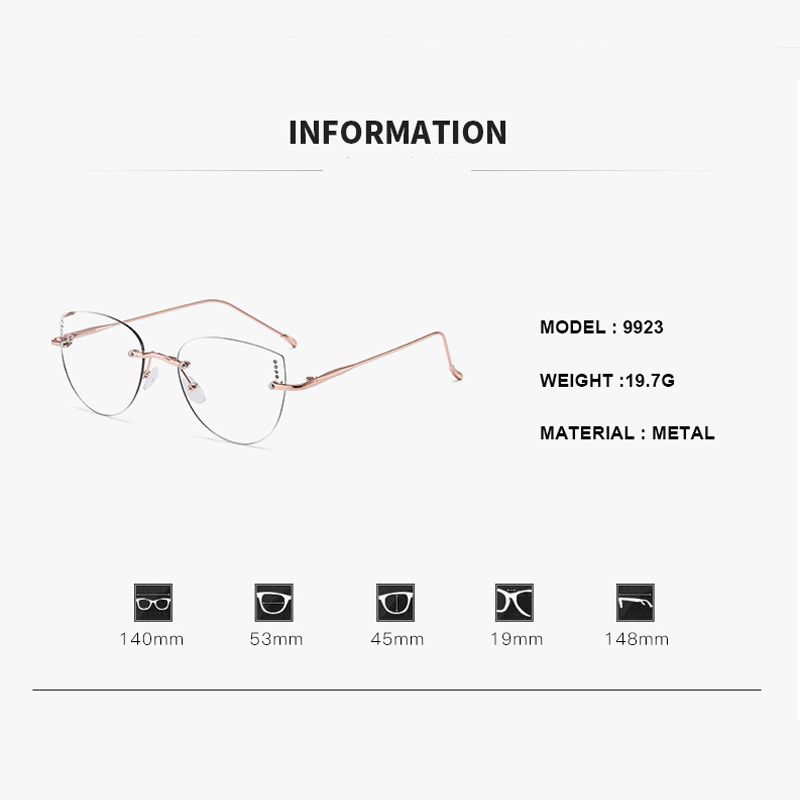 Ultralight Women's Frameless Glasses Frame Color Change Myopia Glasses Fashion Cat Glasses Frame Glasses 9923