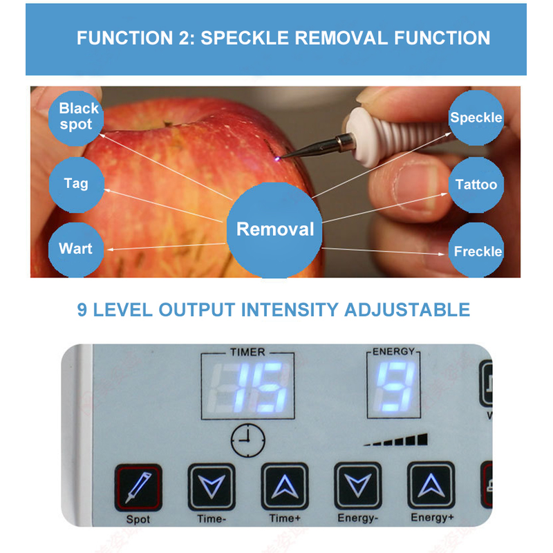 Needle: the thick needle is for removing tattoo,warts,spots and the Fine needle is for removing speckle, used for small areas of spots