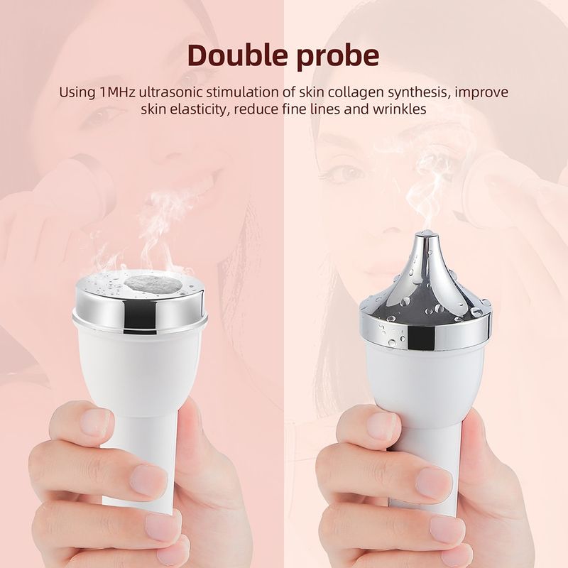 2.Double probe. Using 1MHz ultrasonic stimulation of skin collagen synthesis, improve skin elasticity, reduce fine lines and wrinkles.