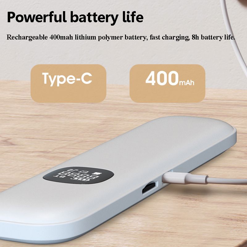 Rechargeable 400mah lithium polymer battery, fast charging, 8h battery life.