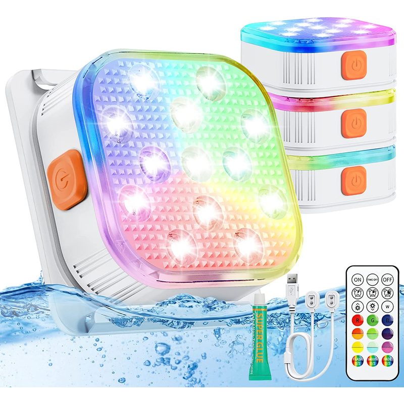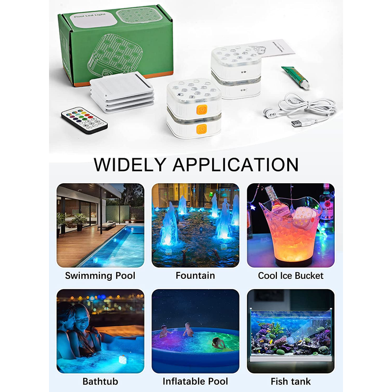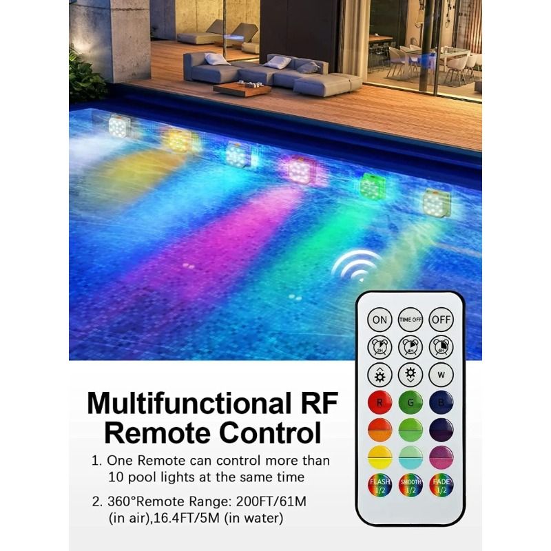 Underwater Lights LED Submersible Pool Lights Rechargeable 200FT Remote Control Swimming Pool Light with Timer Color changing