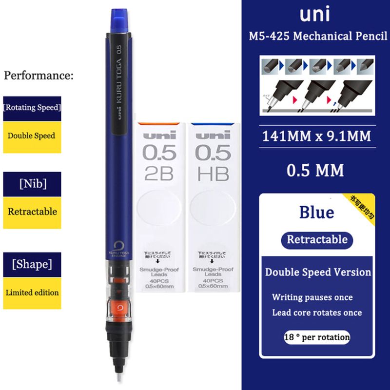 UNI KURUTOGA Mechanical Pencil M5-452 Creative Writing Continuous Sketch 0.5mm Lead Automatic Rotating Mechanical Pencil