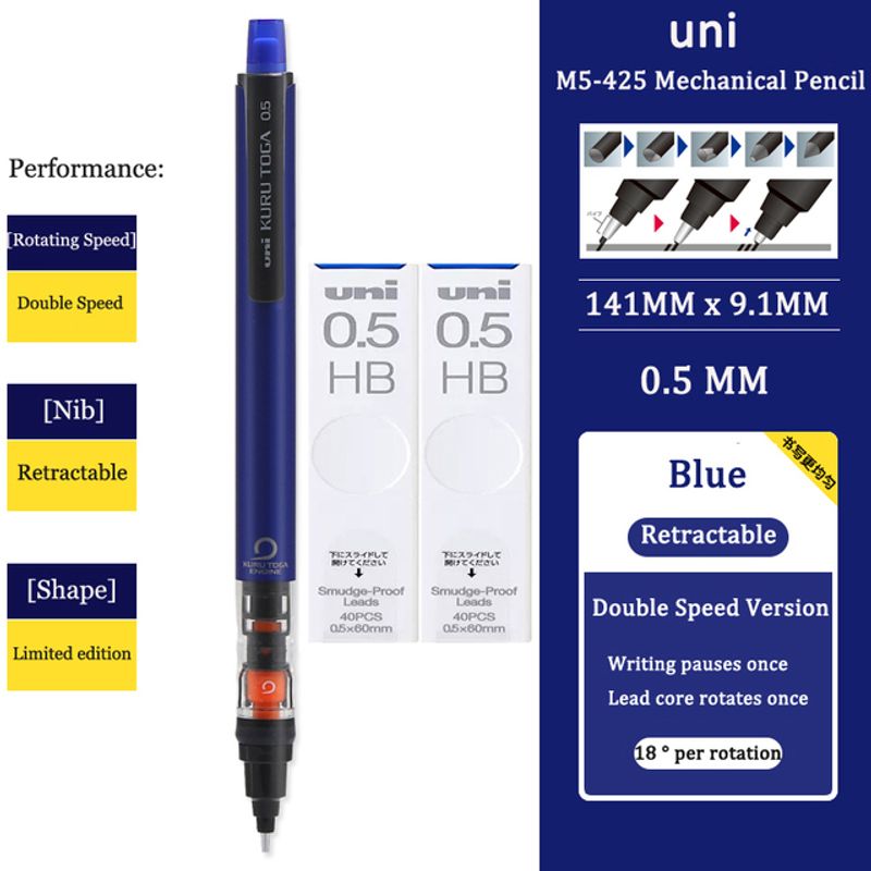 UNI KURUTOGA Mechanical Pencil M5-452 Creative Writing Continuous Sketch 0.5mm Lead Automatic Rotating Mechanical Pencil
