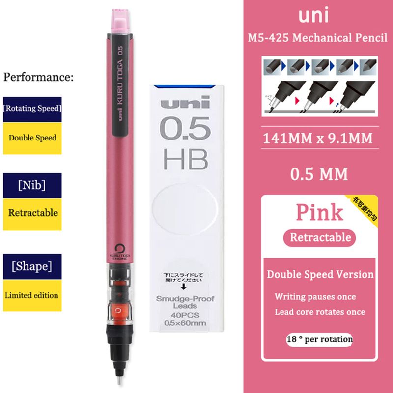 UNI KURUTOGA Mechanical Pencil M5-452 Creative Writing Continuous Sketch 0.5mm Lead Automatic Rotating Mechanical Pencil