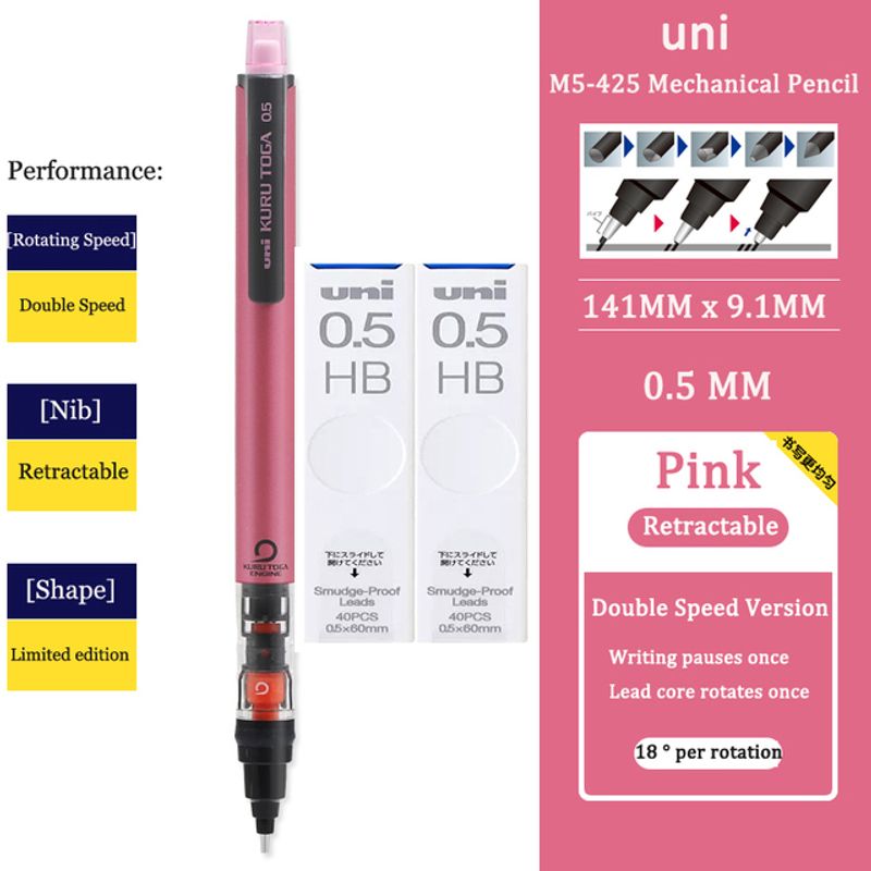 UNI KURUTOGA Mechanical Pencil M5-452 Creative Writing Continuous Sketch 0.5mm Lead Automatic Rotating Mechanical Pencil