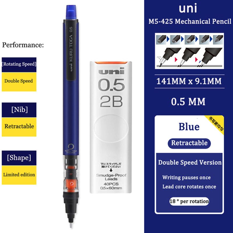 Uni Mechanical Pencil M5-452 Kuru Toga 0.5MM Breakproof Lead lapicero lapices portaminas with Eraser School Student Stationery