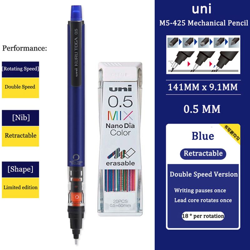 Uni Mechanical Pencil M5-452 Kuru Toga 0.5MM Breakproof Lead lapicero lapices portaminas with Eraser School Student Stationery