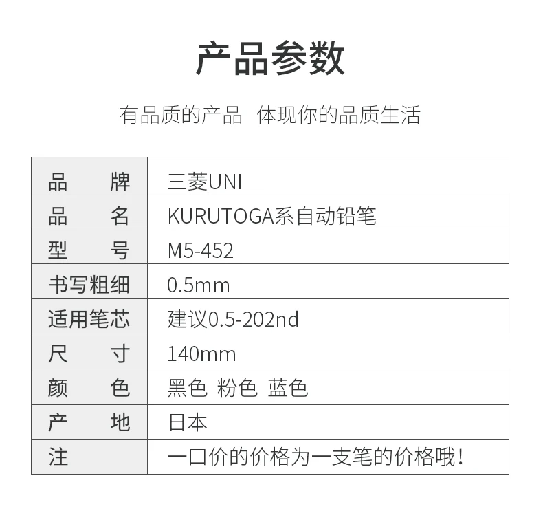 Uni Mechanical Pencil M5-452 Kuru Toga 0.5MM Breakproof Lead lapicero lapices portaminas with Eraser School Student Stationery