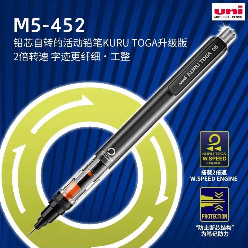 Uni Mechanical Pencil M5-452 Kuru Toga 0.5MM Breakproof Lead lapicero lapices portaminas with Eraser School Student Stationery