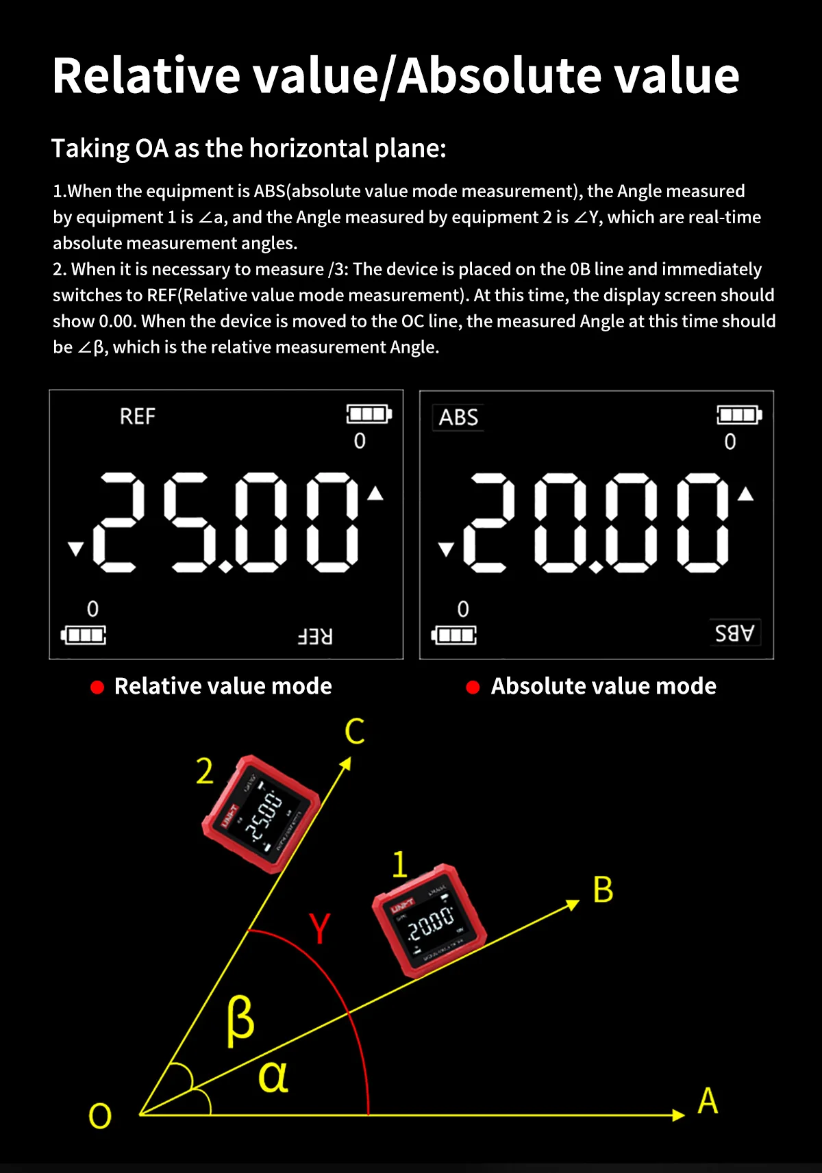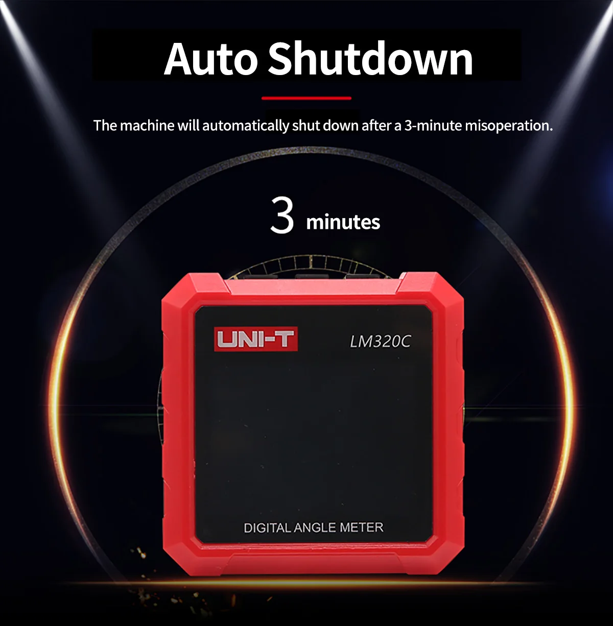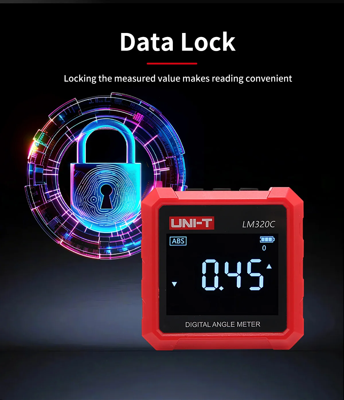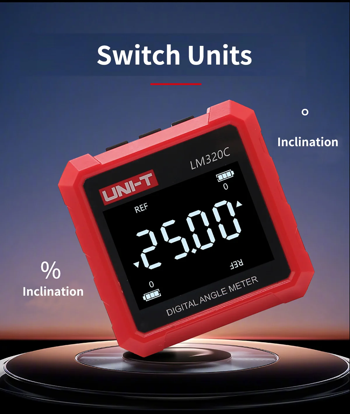 The LM320C is a lightweight, portable angle measurement instrument with clear readouts, suitable for various decoration and installation scenarios. It features automatic screen rotation for viewing from either side, a 4×90° measurement range, and a convenient magnetic base for easy positioning and secure measurements.