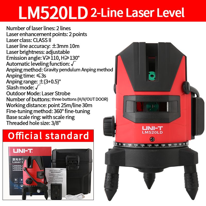UNI-T Laser level LM520LD LM530LD LM550LD 2/3/5 Cross Lines Self-Leveling 360 Rotatable 3D Green Laser In-outdoor Leveler Tools