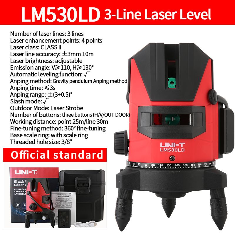 UNI-T Laser level LM520LD LM530LD LM550LD 2/3/5 Cross Lines Self-Leveling 360 Rotatable 3D Green Laser In-outdoor Leveler Tools