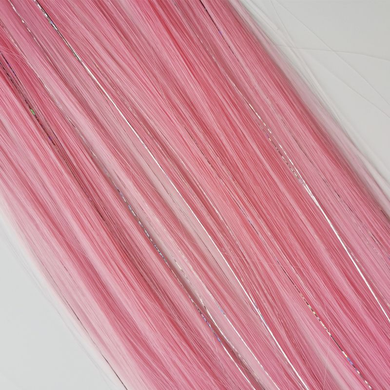 Chancey Hair colored clip in hair extension is creatively connected with sparkling glitter tinsels, which can create attractive shimmering hair styles in seconds without having to install the tinsels by any tools.