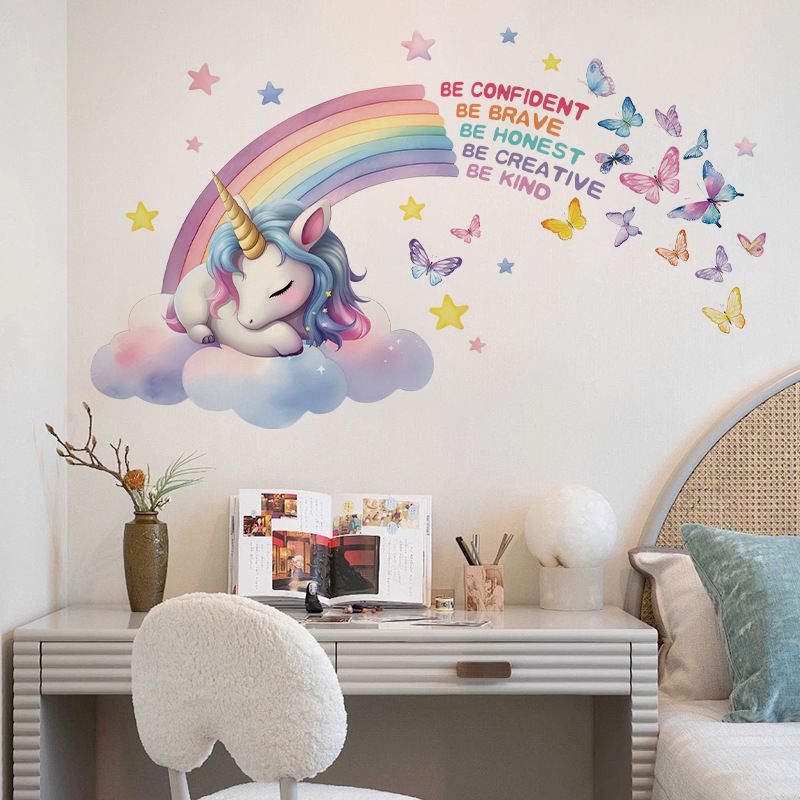 Unicorn Vinyl Child Wall Sticker For Baby Room Decoration Bedroom Accessories Furniture Sticker Adhesive Wallpaper Wall Decor