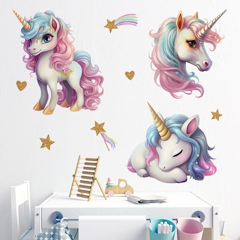 Unicorn Vinyl Child Wall Sticker For Baby Room Decoration Bedroom Accessories Furniture Sticker Adhesive Wallpaper Wall Decor