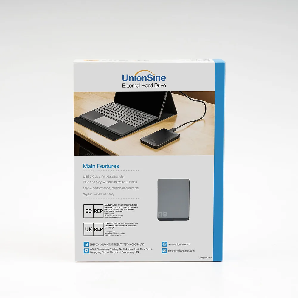 As a manufacturing and trading integrated company specializing in computer storage accessories, UnionSine offers a wide range of products — from compact portable drives to high-capacity 3.5" external hard drives and high-speed enclosures.