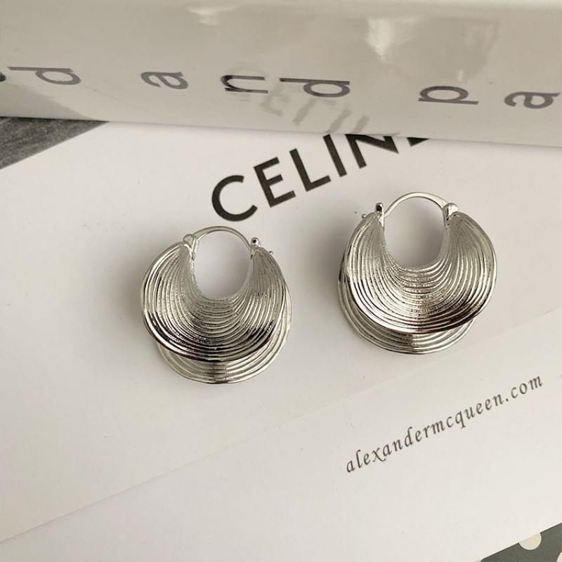 Unique Geometric Irregular Striped Large Ear Buckle Earrings for Women Creative Metal Gold Color Fan Shaped Earring Jewelry Gift