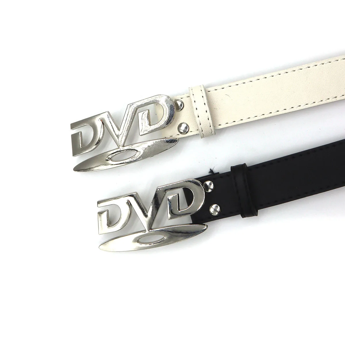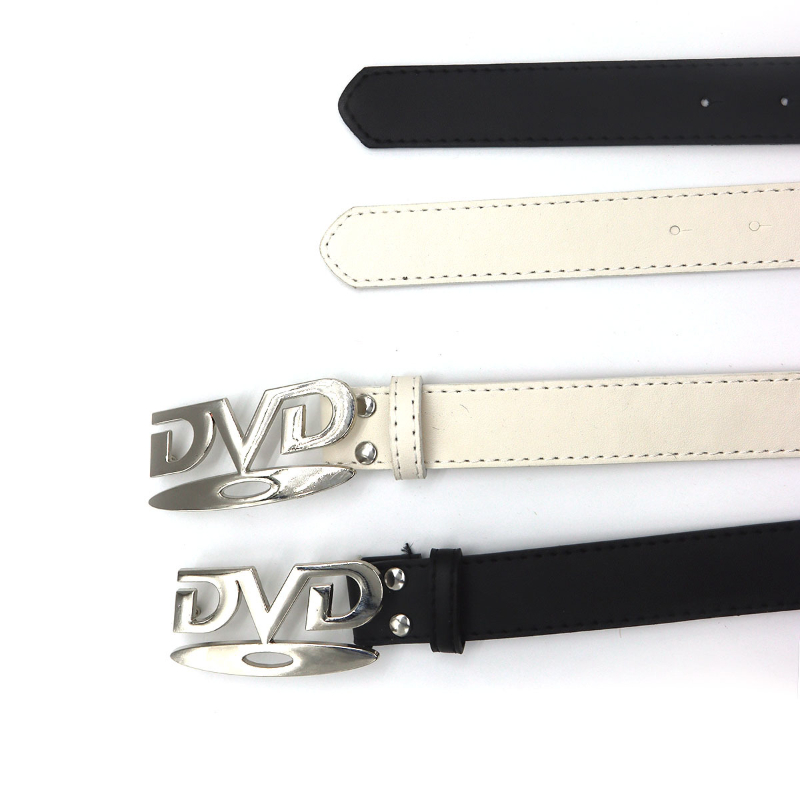 Unisex Nostalgic Design DVD Buckle Belt Men Women Decoration Paired with Jeans Belt Versatile White Black Design Sense Belt