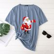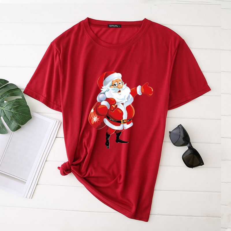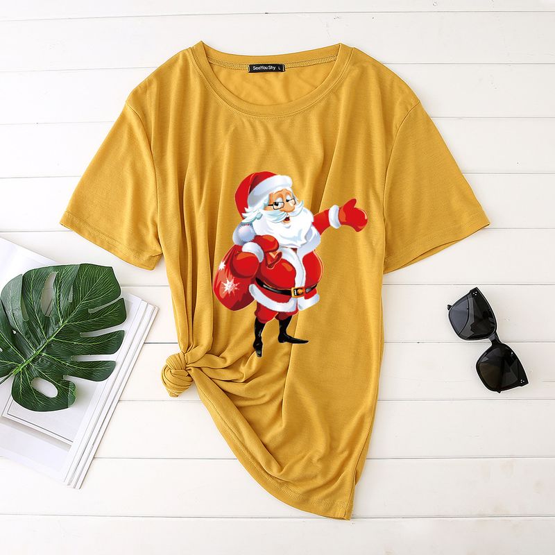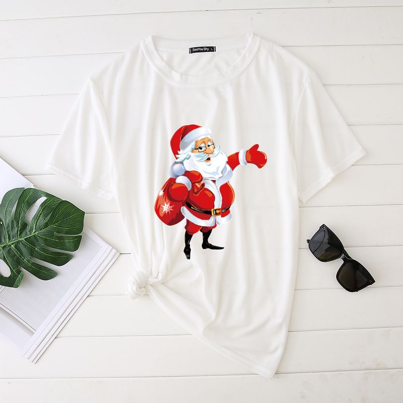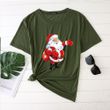 Unisex Santa Printed Loose Round Neck T-Shirt Carrying Bags Army Green L
