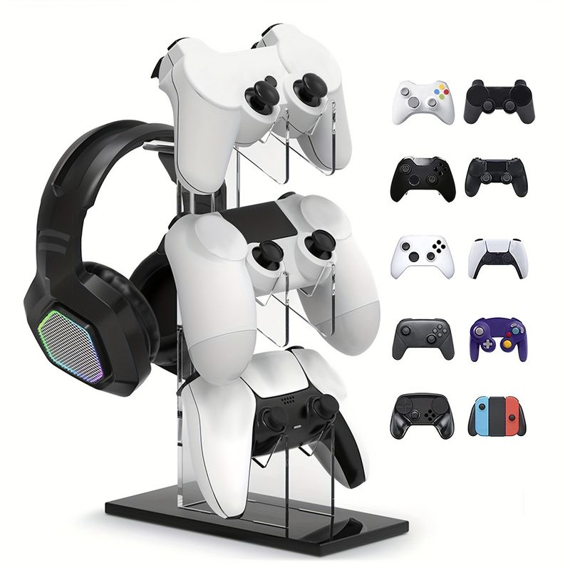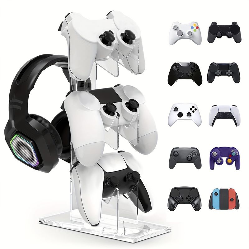 Universal 3-layer Controller Holder and Headphone Holder Game Accessories For PS5 PS4 Storage Holder Black, White, Transparent