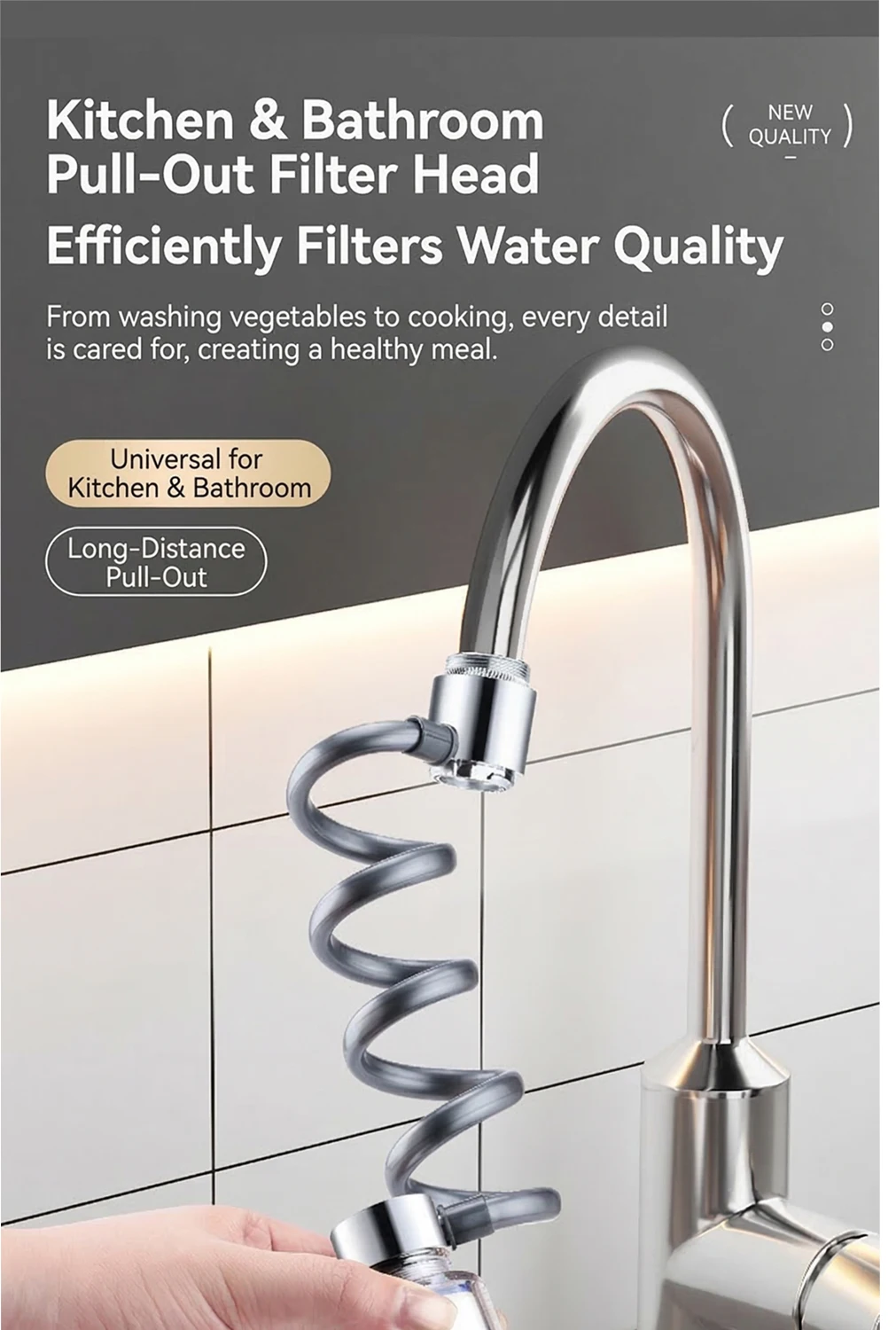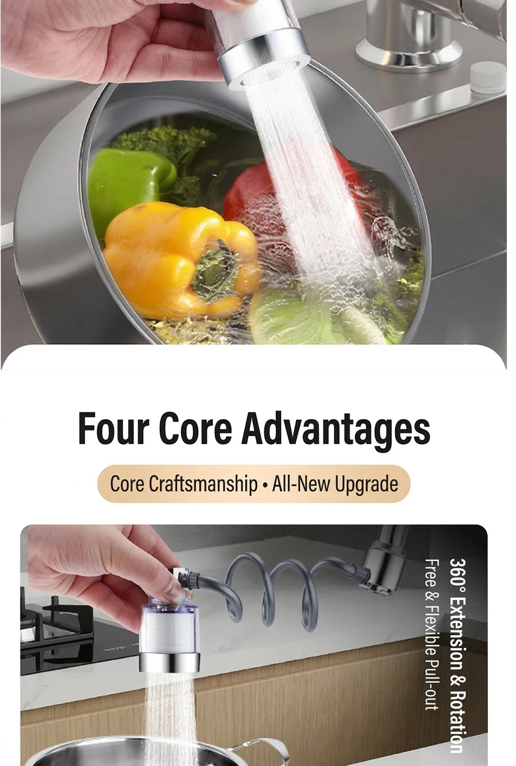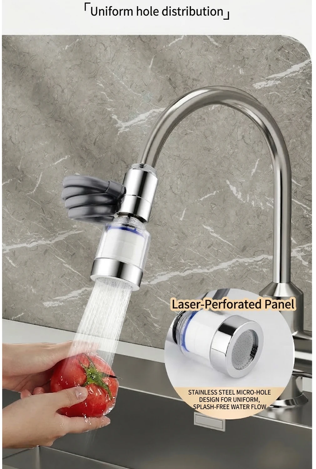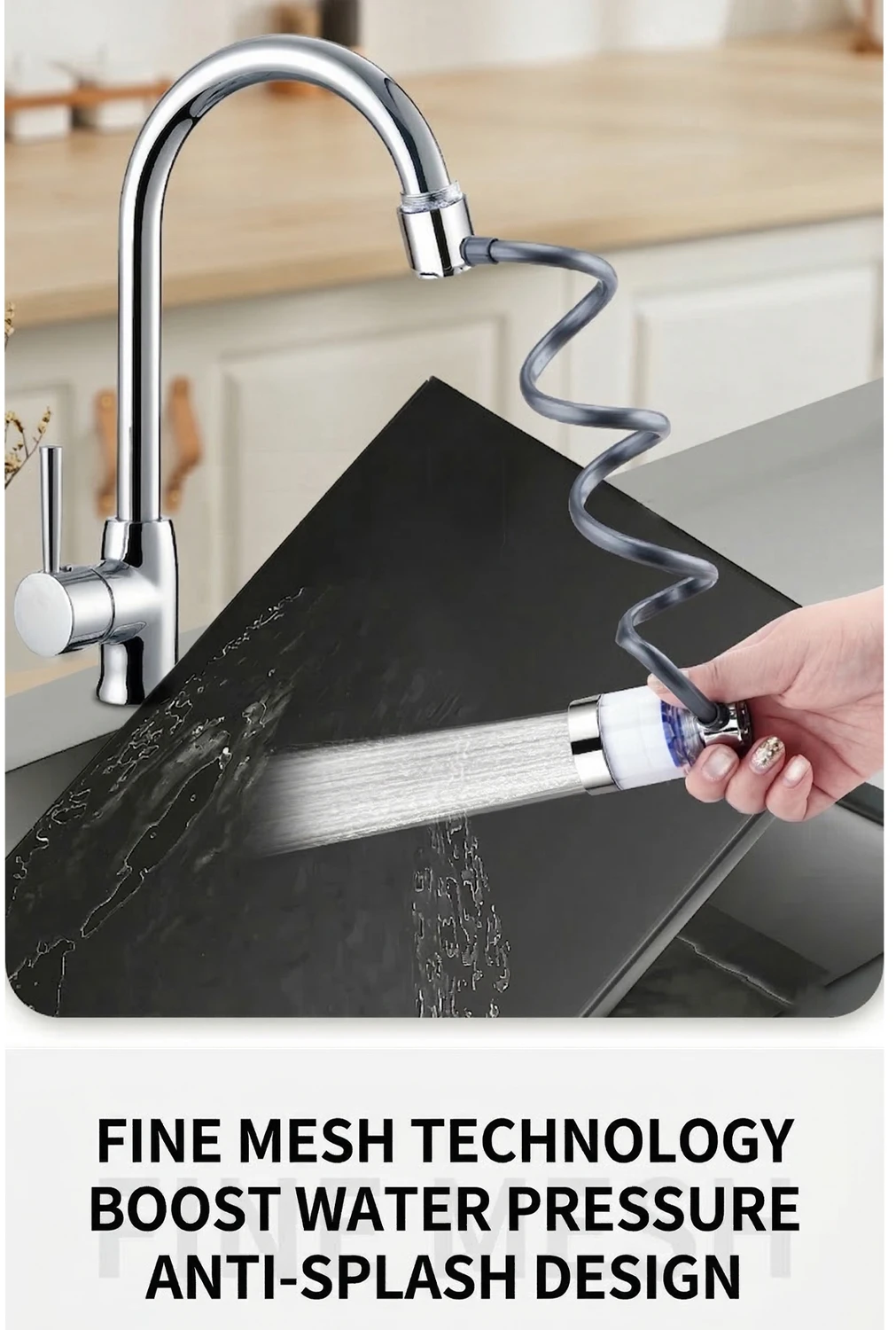 Universal 360° Rotatable Kitchen Faucet Filter Extension Pull-out Tap Purifier Water Saving Sprayer Head Splash-proof Nozzle