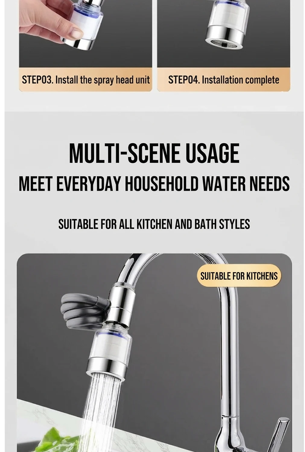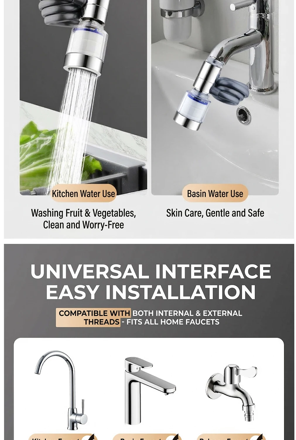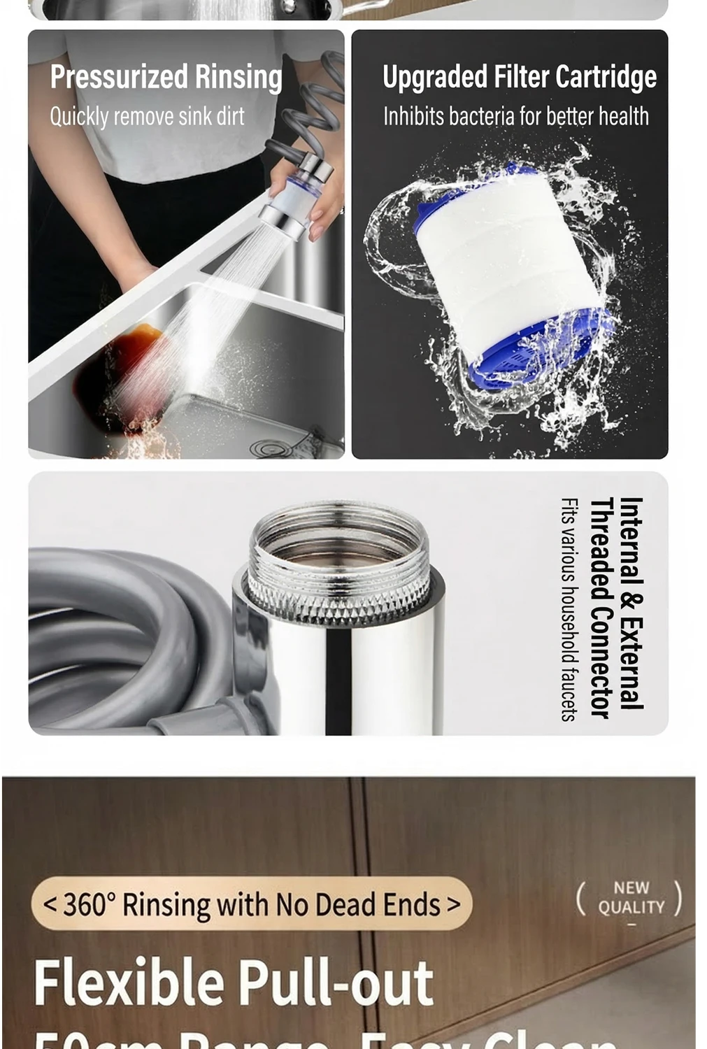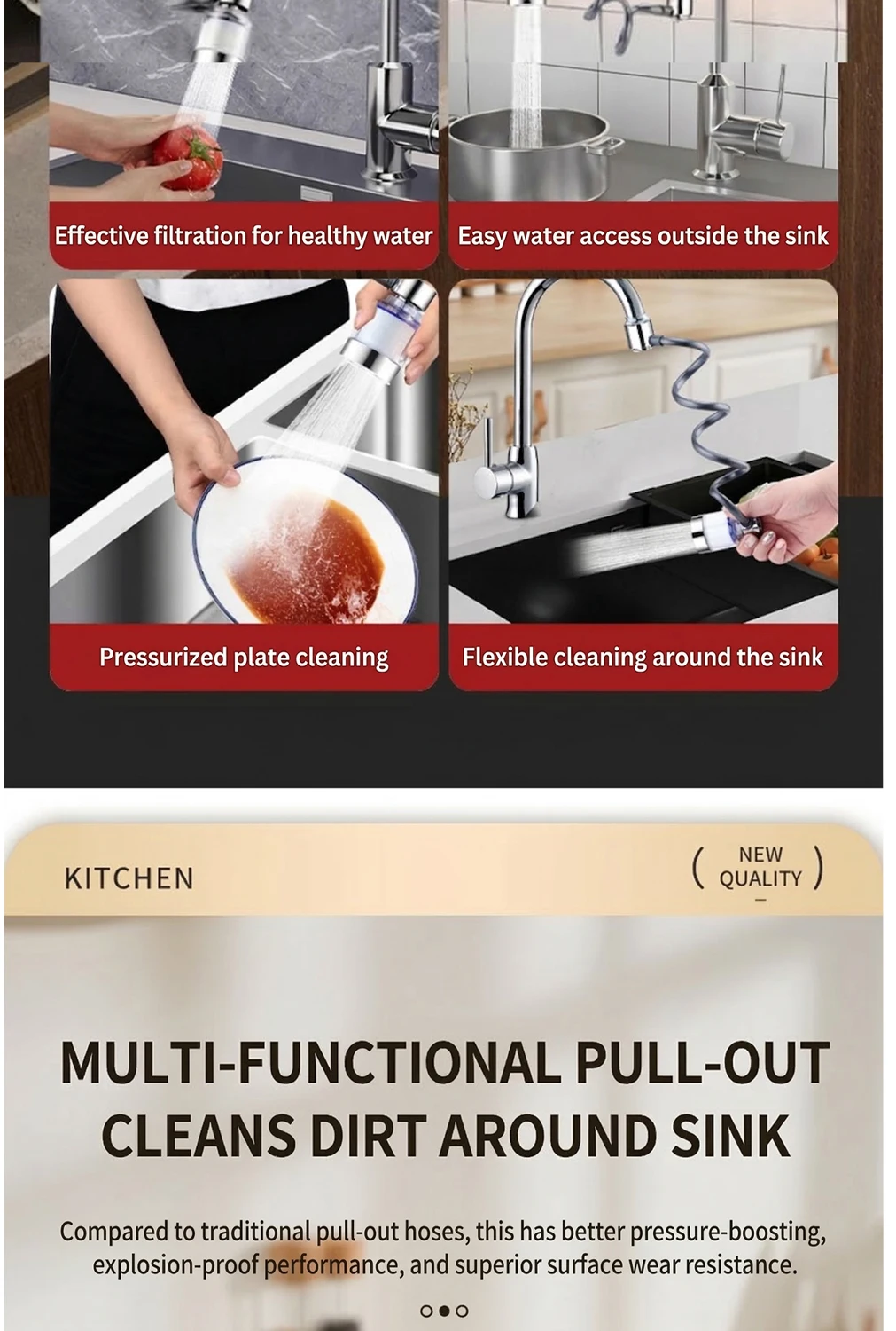 Universal 360° Rotatable Kitchen Faucet Filter Extension Pull-out Tap Purifier Water Saving Sprayer Head Splash-proof Nozzle