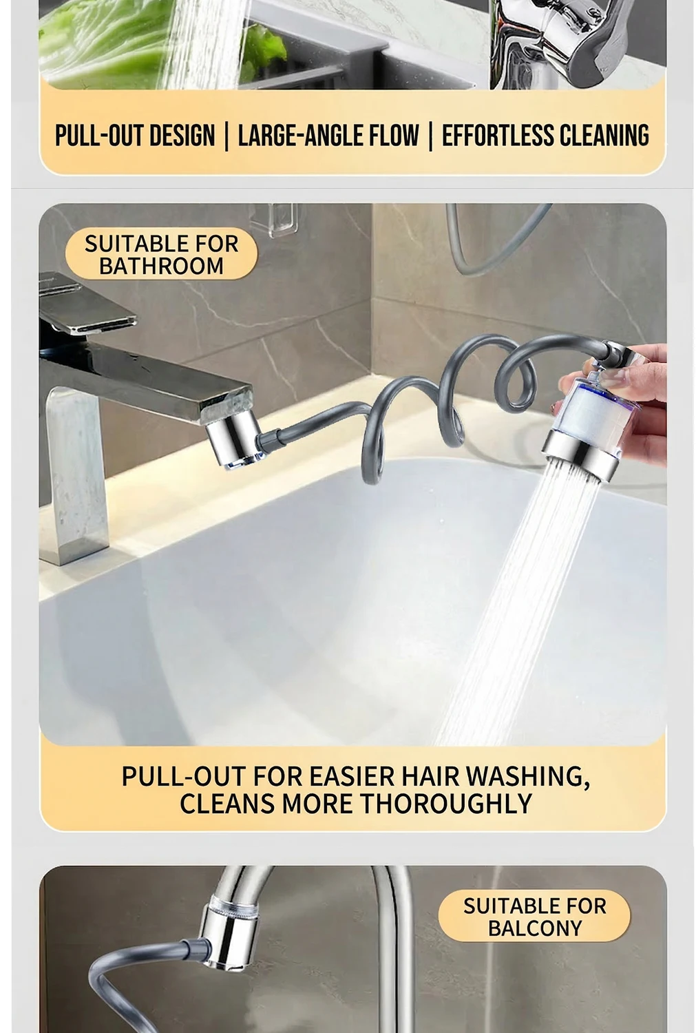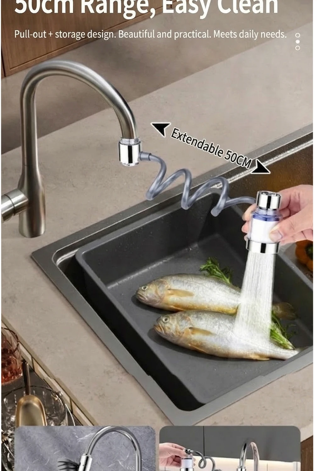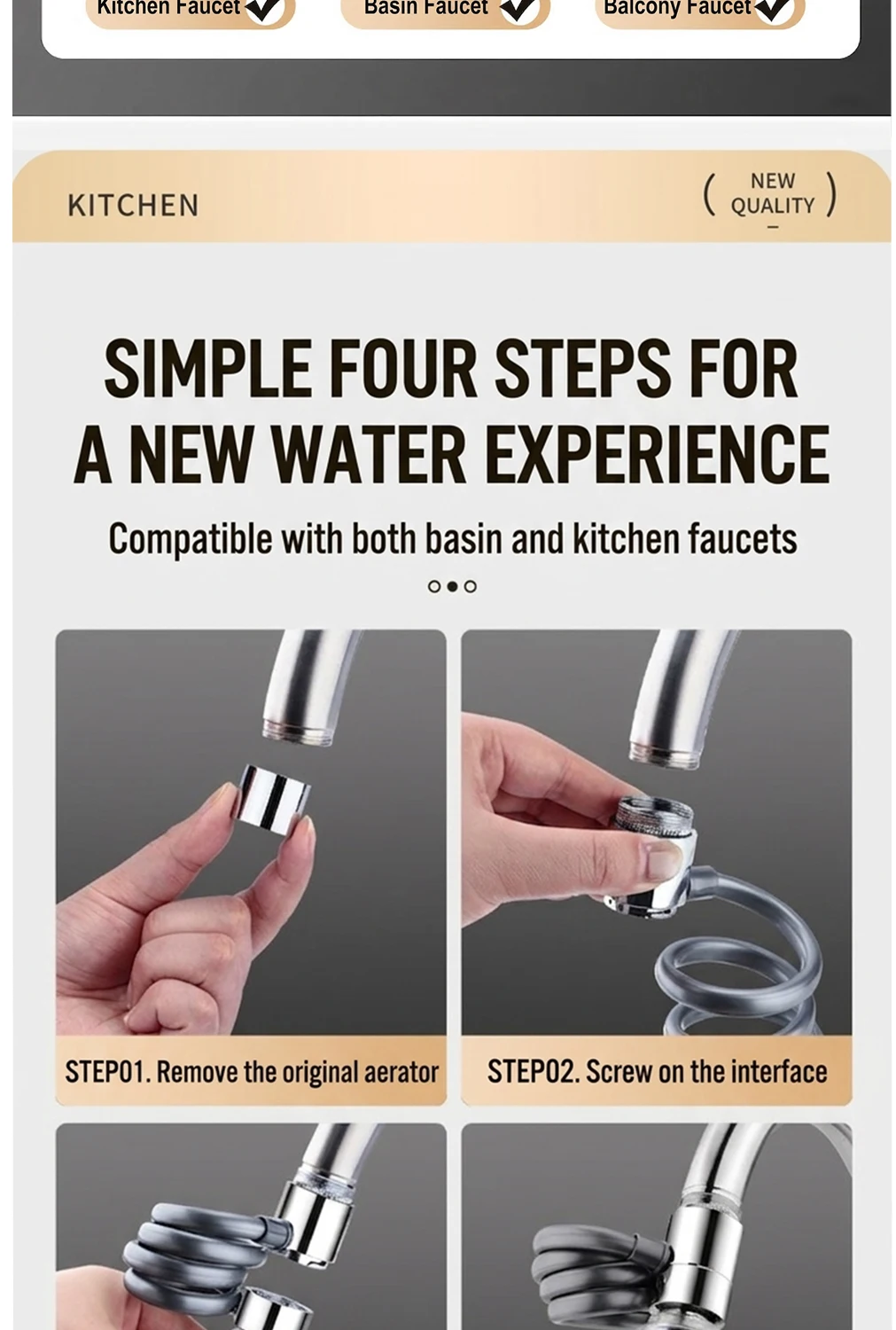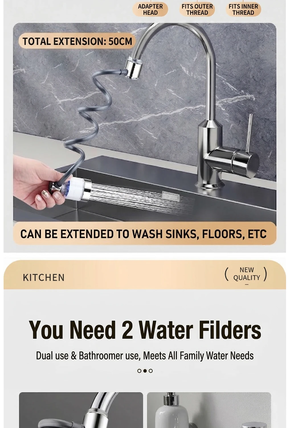 Universal 360° Rotatable Kitchen Faucet Filter Extension Pull-out Tap Purifier Water Saving Sprayer Head Splash-proof Nozzle