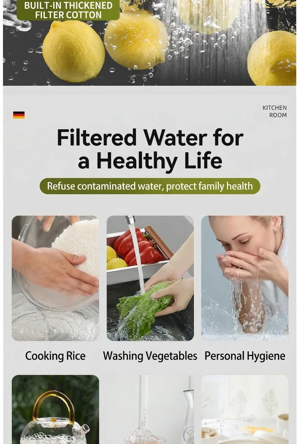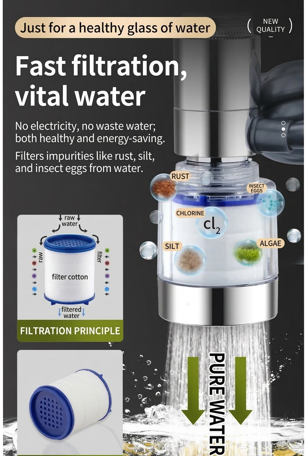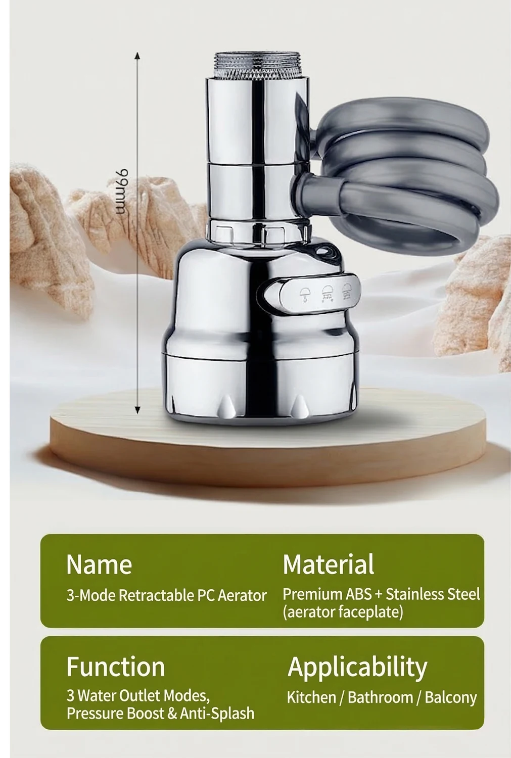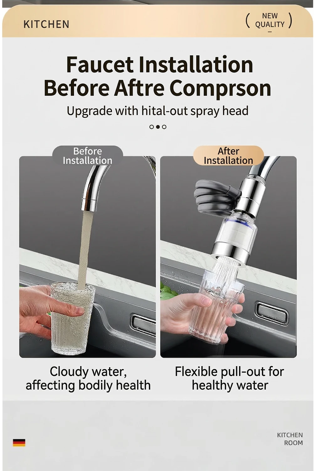 Universal 360° Rotatable Kitchen Faucet Filter Extension Pull-out Tap Purifier Water Saving Sprayer Head Splash-proof Nozzle
